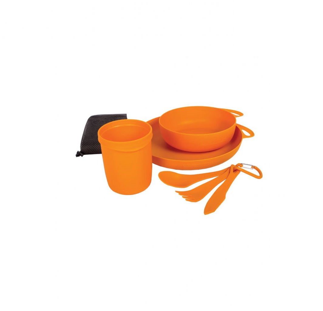 The Delta Camp Set combines all the essential camp dinnerware – plate, bowl, mug and 3-piece cutlery set – into a convenient and lightweight set that has you covered from breakfast to dinner. The Camp Set comes in a gusseted mesh pouch for allowing wet dishes to dry, and has an easy-to-use drawstring closure.