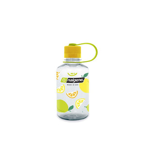 The classic BPA/BPS-free Nalgene Narrow Mouth bottle in 3 delightful fruit prints. All Nalgene bottles are now made with a revolutionary resin powered by new recycling technology that transforms plastic destined for landfills into high-performance BPA/BPS-free bottles. This material is derived from 50% waste plastic (using ISCC certified mass balance), further offsetting the use of fossil fuels and lowering greenhouse gas emissions.